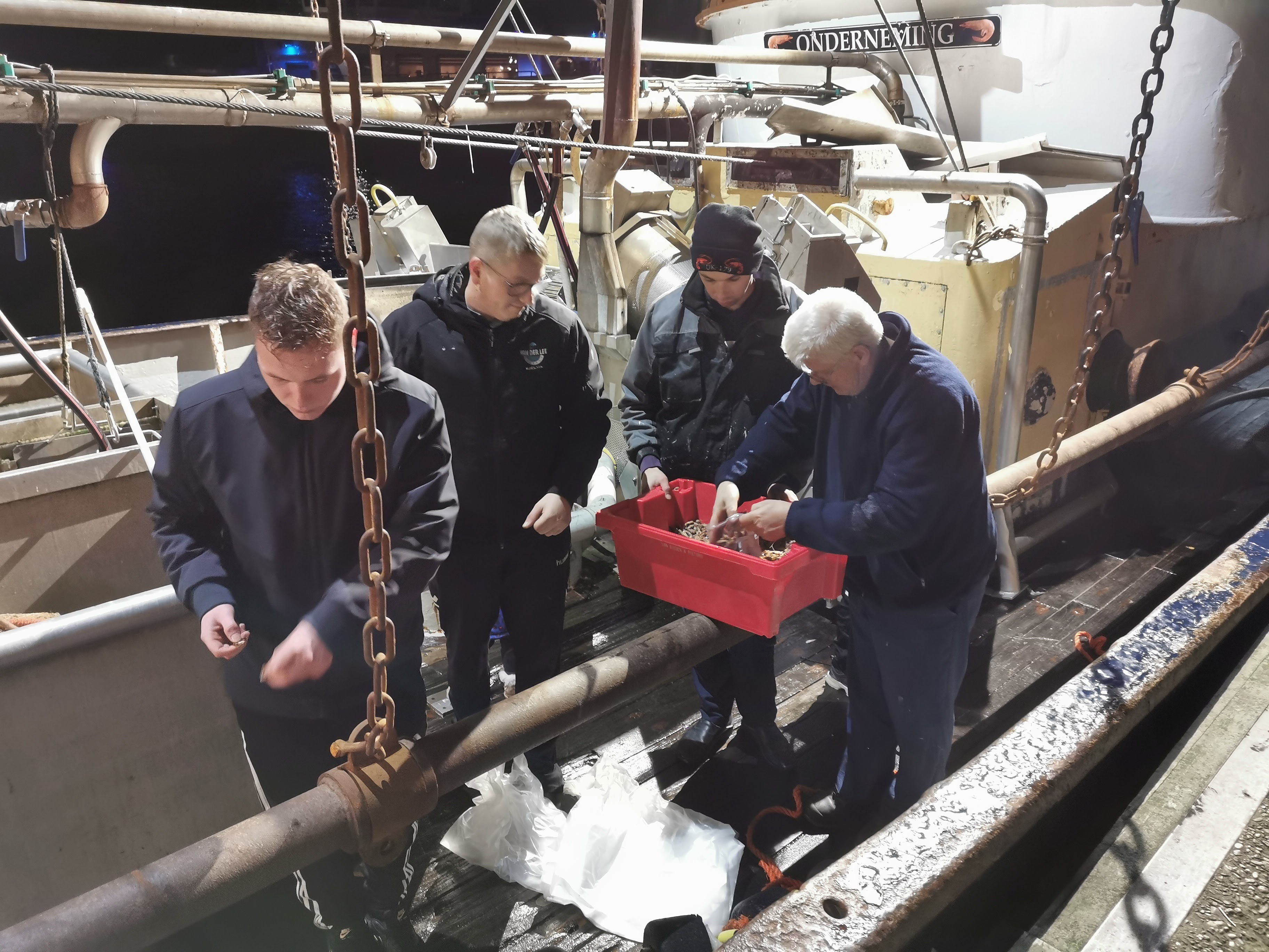 Mijn vader en mijn broer zijn garnalenvissers. Ze vissen meestal voor de kust van Nederland maar ook die van Denemarken. Het vissen op garnalen gaat meestal op deze manier. Zondagnacht om 12 uur rijden ze naar de haven in Harlingen of ergens in Denemarken, dat is 8 uur reizen, voordat ze dan aan boord zijn. Ze nemen eten mee voor de hele week. Vaak zijn ze op vrijdag klaar op de kotter en komen ze rond de middag of avond weer thuis.